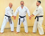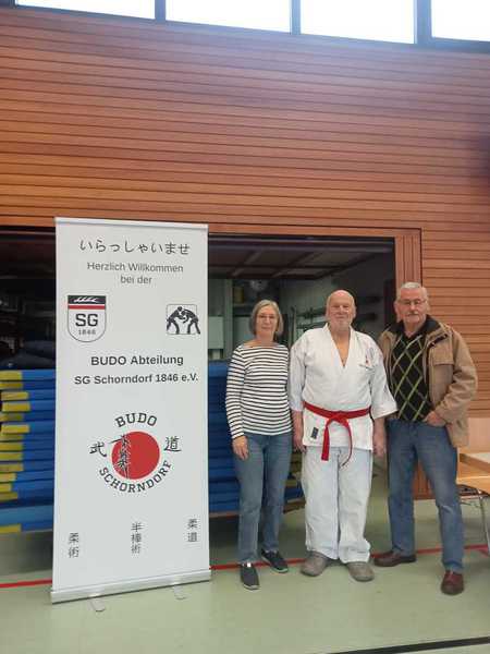Als Überraschungsgast waren Hannelore und Lothar Sieber, beide mit dem 10. Dan graduiert, gekommen. Nach unterschiedlichen Wegen im Jiu Jitsu ein Treffen nach über 50 Jahren zwischen Norbert und den beiden. 3 Urgesteine des Jiu Jitsu in Deutschland.